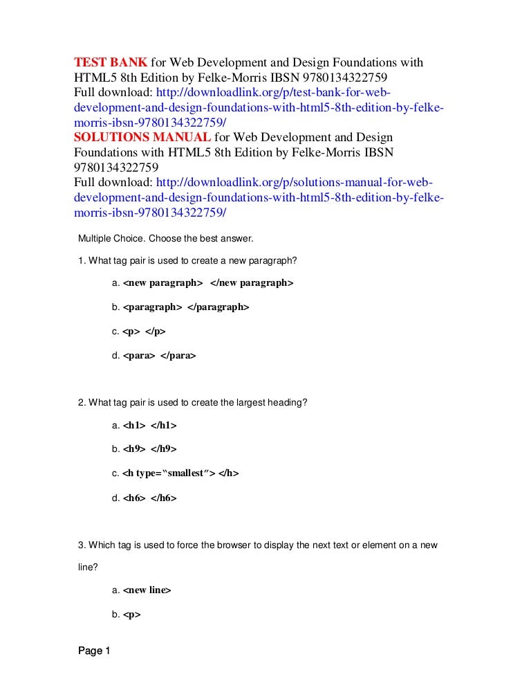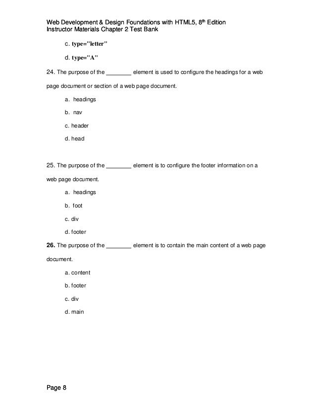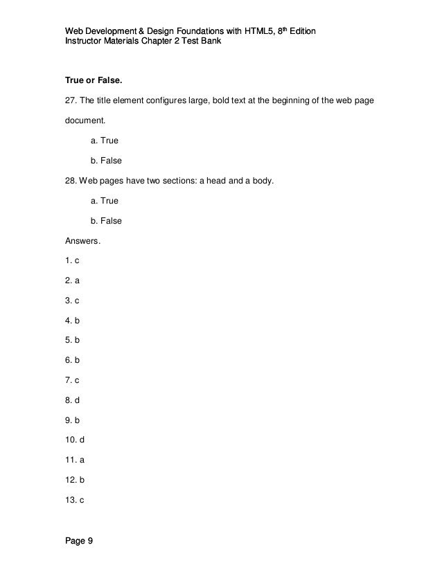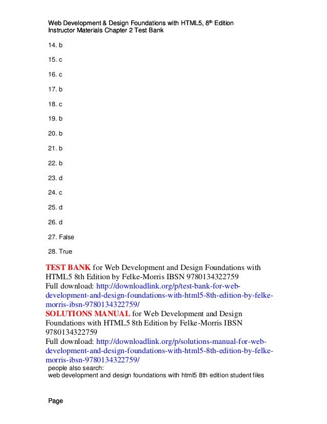 Test Bank For Web Development And Design Foundations With Html5 8th E