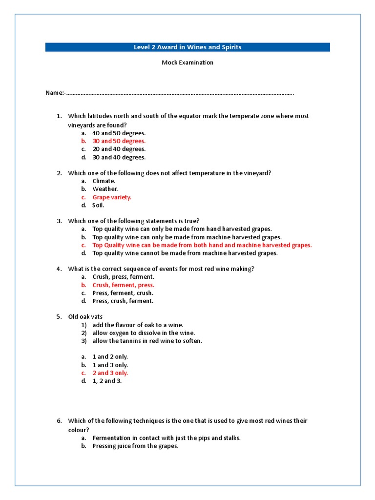 Wset level 2 wine sample questions. He knows his wine his spirits and his sake and he is a veteran of tastings and qualififcations in all three. The examination invigilator will give the full instructions on how to complete the answer sheet on. All wset level 1 award in wines examination papers are carefully compiled to reflect the syllabus.